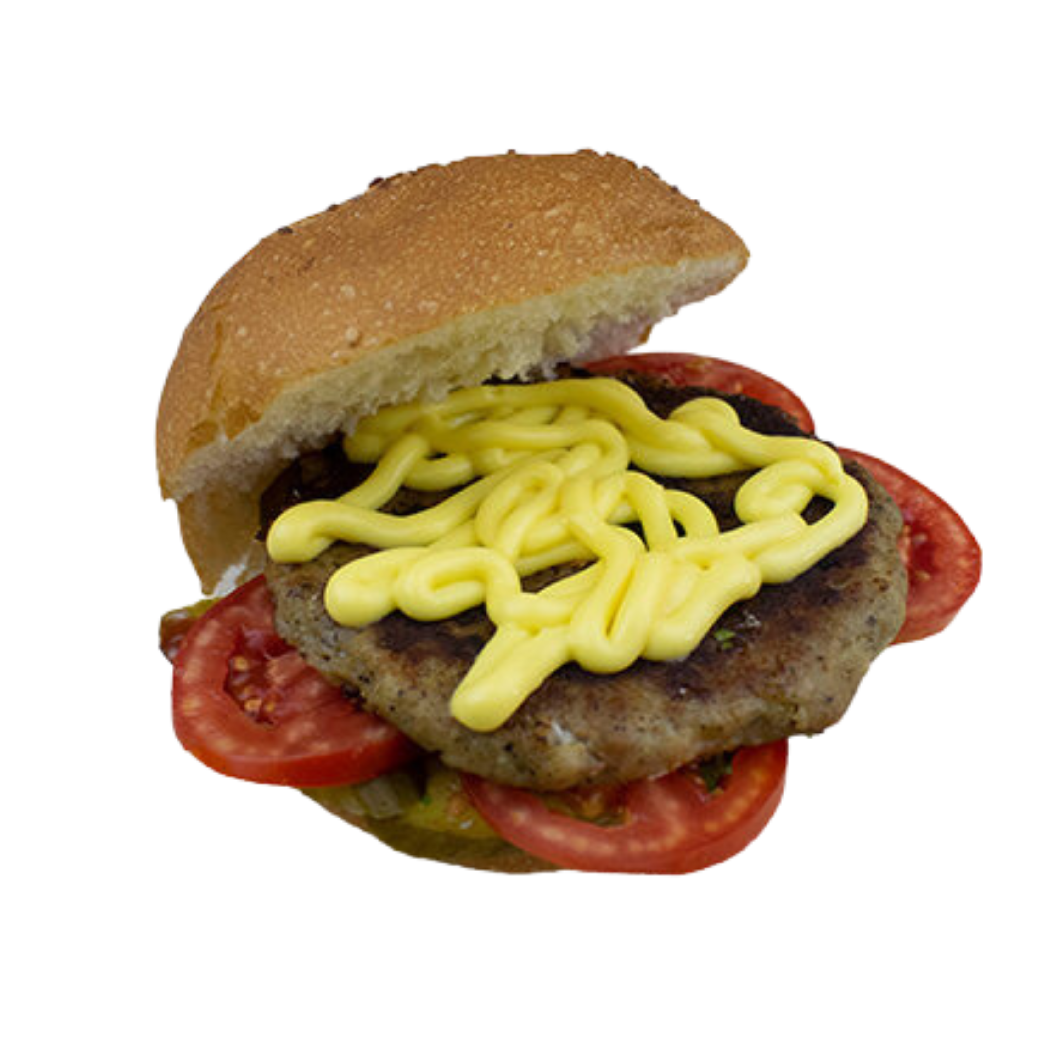 برجر دجاج، طماطم، بيض،كاتشب، مايونيز